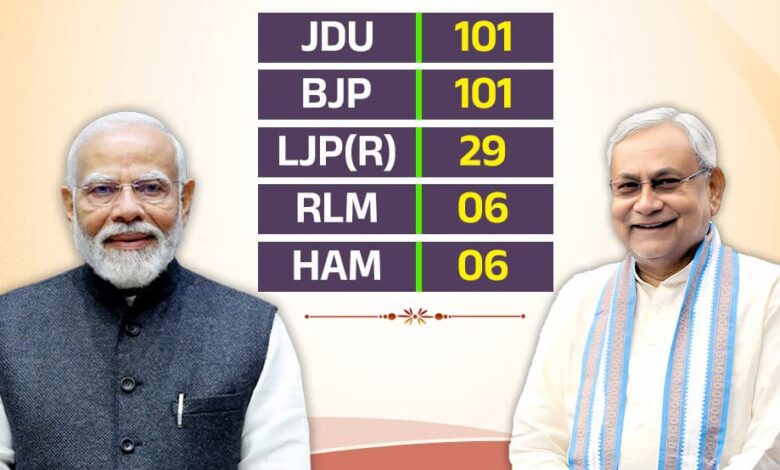 बिहार विधानसभा चुनाव : एनडीए में सीटों का हुआ बंटवारा, भाजपा- जदयू का मिलीं बराबर सीटें