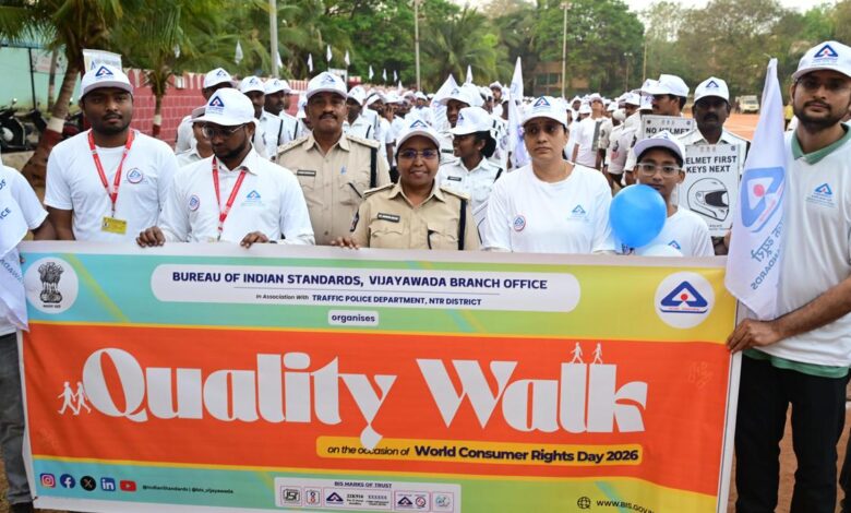 Home/News Feed/News/BIS holds ‘Quality Walk’ in Vijayawada to mark World Consumer Rights Day News BIS holds ‘Quality Walk’ in Vijayawada to mark World Consumer Rights Day IP News Desk Send an email March 15, 2026 Facebook X Pinterest WhatsApp Telegram Post ContentRead More IP News Desk Send an email March 15, 2026 Facebook X Pinterest WhatsApp Telegram Share Facebook X WhatsApp Telegram