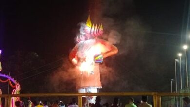HTPS : भव्य आतिशबाजी के बीच विशालकाय रावण का हुआ दहन